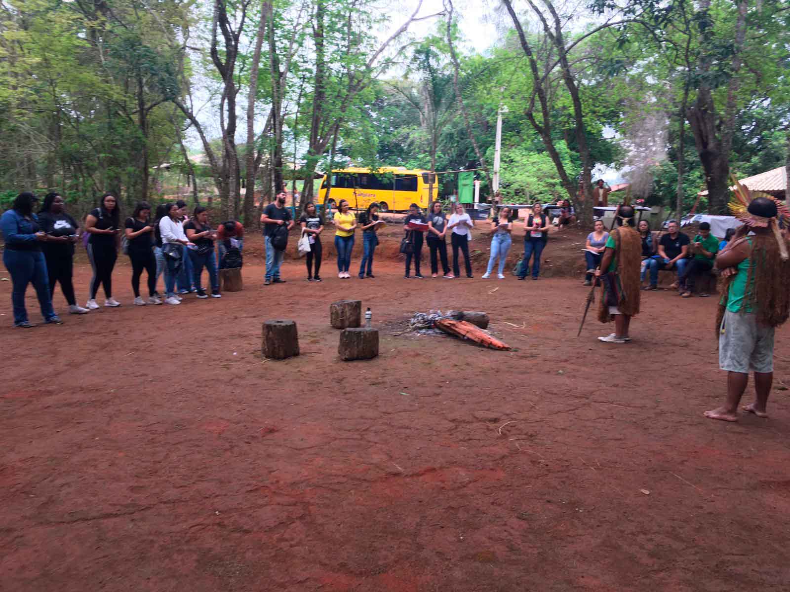 No último sábado (21), discentes da UEMG/Cláudio dos cursos de Direito e Serviço Social estiveram na aldeia Pataxó Muã Mimatxi, para aprender sobre a história e a cultura Pataxó com o cacique Kanatyo e com o subcacique Siwê. Esta visita integra o quadro de um projeto de ensino da disciplina de Antropologia, ministrada pela professora Juliana de Resende Machado, em parceria com as disciplinas de Pesquisa II, ministrada pela professora Leticia Siqueira Lemos (Serviço Social), e Direitos Humanos e Legislação, ministrada pela professora Ana Paula Santos Diniz (Direito).