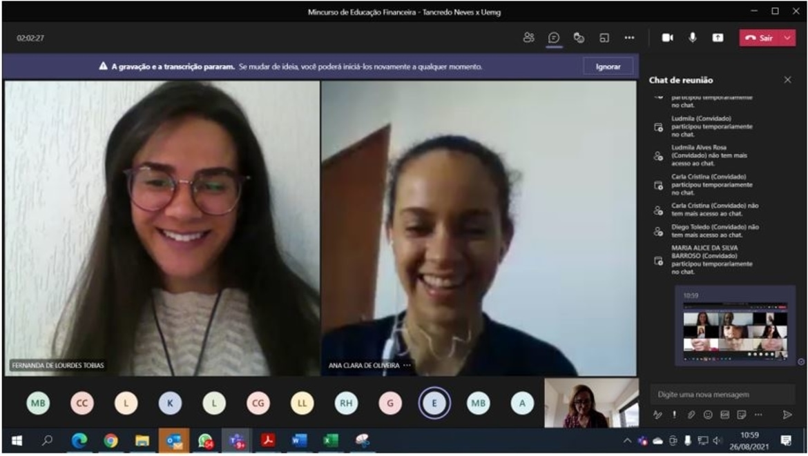 As atividades, que ocorrem por meio da plataforma online Microsoft Teams, fazem parte de um projeto de extensão coordenado pelas professoras Valdilene Machado e Maria Augusta Vieira, com a participação voluntária das estudantes do curso de Ciências Contábeis Ana Clara de Oliveira e Fernanda de Lourdes Tobias.