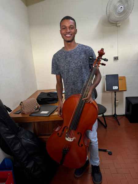 A pandemia de Covid-19 também se revelou um divisor de águas para muitos músicos. É o caso de Walace, 19 anos, que trocou o violino pelo violoncelo durante o isolamento social. Hoje integrante da orquestra do Tribunal de Justiça, ele vê na UEMG o próximo passo lógico: "Estou com muita expectativa devido ao prestígio da universidade perante a comunidade da música".