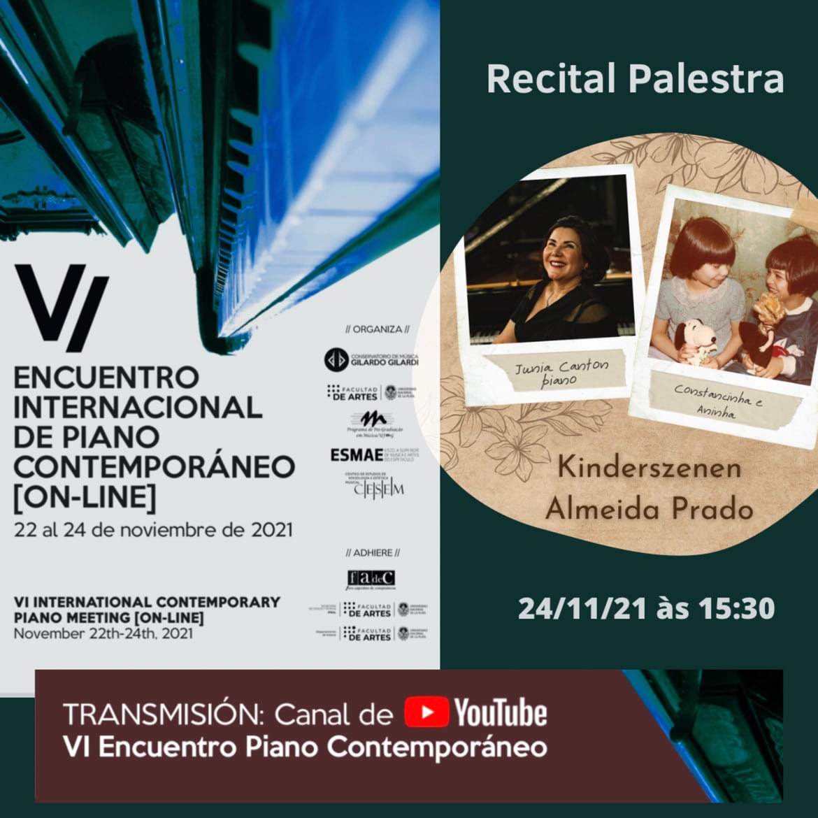 Com a exibição do Recital-Palestra "Kinderszenen de Almeida Prado", a professora Junia Canton representará a Escola de Música/UEMG no VI Encuentro Internacional de Piano Contemporáneo, promovido pelo Conservatorio de Música Gilardo Gilardi (Itália).