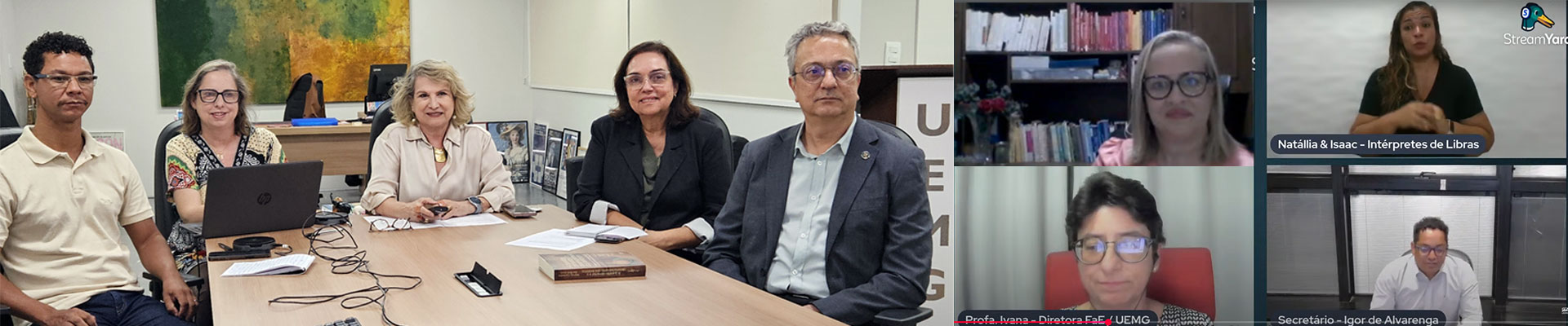 A solenidade de abertura contou com a presença de importantes autoridades, incluindo a Reitora da UEMG, Professora Lavínia Rosa Rodrigues, o Secretário de Estado de Educação de Minas Gerais, Igor de Alvarenga Oliveira Rojas, os Pró-Reitores da UEMG, Patrícia Caetano (Graduação) e Moacyr Laterza (Extensão), a Diretora da Faculdade de Educação da UEMG, Professora Ivana de Oliveira Carvalho, e o Coordenador da Universidade Aberta do Brasil/UEMG, Professor Adálcio Carvalho de Araújo. O evento também contou com tradução simultânea para a Língua Brasileira de Sinais (Libras).