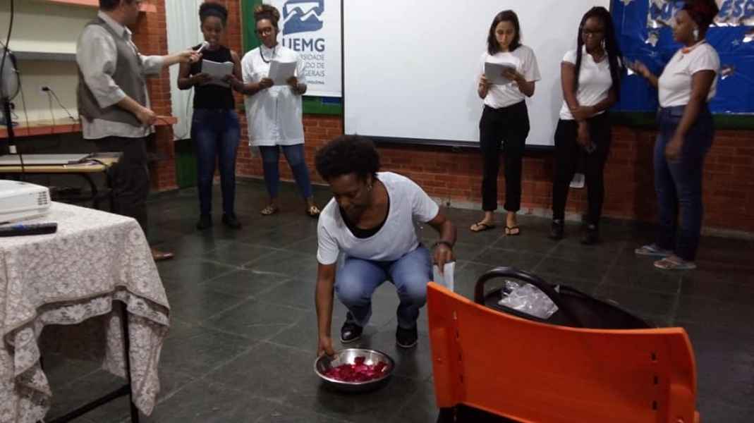 Sob coordenação do Prof°. Dr. Rodrigo Fialho Silva, uma leitura dramatizada de ‘Guerras Urbanas’, de Camila de Oliveira Farias, finalizou as atividades. Interpretado pela atriz Eufrázia Maria da Silva, o texto traz uma narrativa que ilustra a trajetória do jovem negro no Brasil, denunciando as poucas escolhas de vida possíveis e o frequente encontro com a violência.