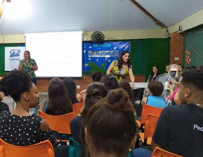 Também na quarta-feira, as acadêmicas Aline Cerqueira, Anajadir Morais e Laralice Cordeiro, representando a equipe extensionista do projeto ‘Não, não gostamos de ter medo’, participaram da Mesa redonda ‘Violência: vieses investigativos na UEMG – Unidade de Leopoldina’. O projeto de extensão, que tem a coordenação da professora Drª Camila Cravo, vem sendo desenvolvido em escolas estaduais e municipais, capacitando profissionais da educação para identificar e denunciar casos de maus tratos e abusos. “Participar da mesa redonda foi um momento muito significativo para toda a equipe, pois além de apresentarmos os resultados parciais referentes ao desenvolvimento do projeto, foi possível também nos aproximarmos de toda comunidade acadêmica que ali esteve presente e propiciar uma reflexão acerca da violência contra as mulheres e meninas, principalmente no tocante da violência sexual, superando os tabus que envolvem o assunto”, relatou a aluna Anajadir Morais.