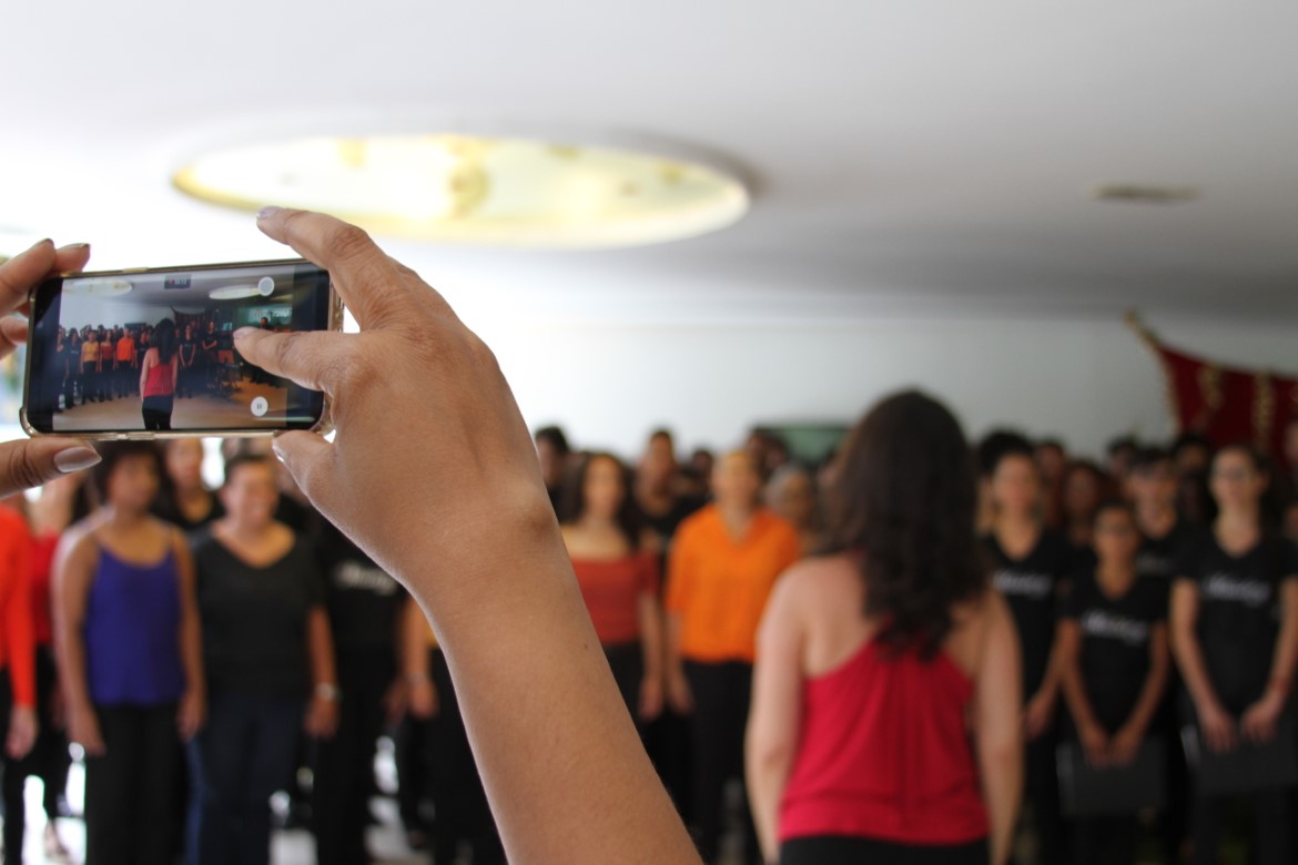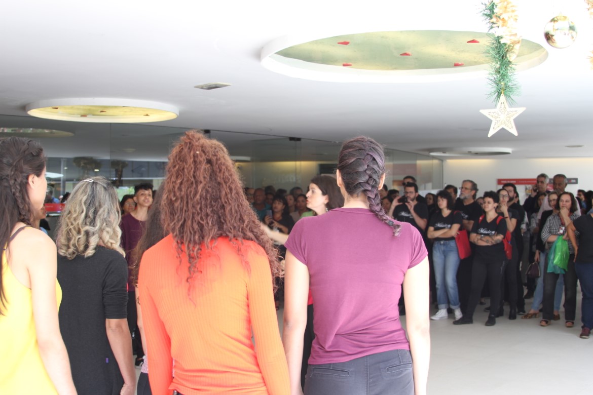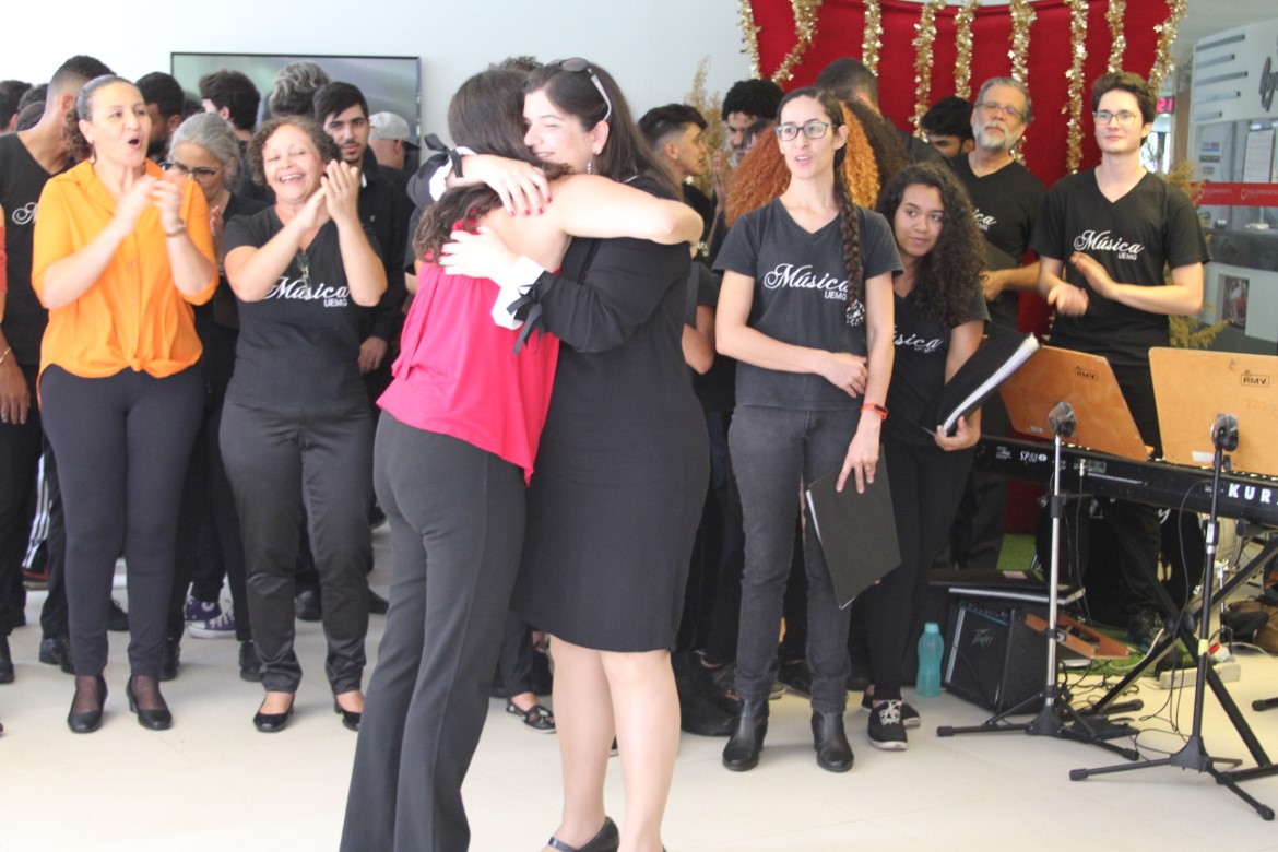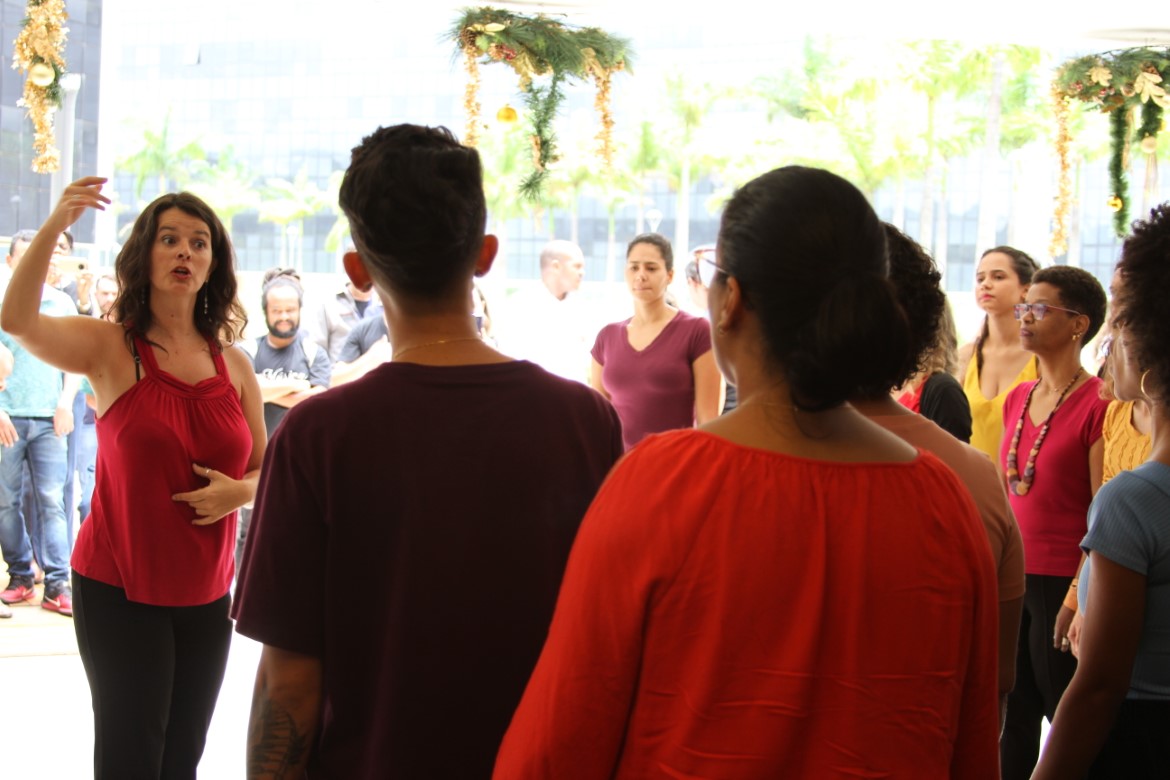 O espaço de convivência da Cidade Administrativa de Minas Gerais, em Belo Horizonte, recebeu hoje (05/12) uma apresentação reunindo os coros feminino e masculino da Escola de Música (EsMu) da UEMG, além do Coro da LEM, formado por estudantes dos períodos iniciais de Licenciatura em Música, também da EsMu.