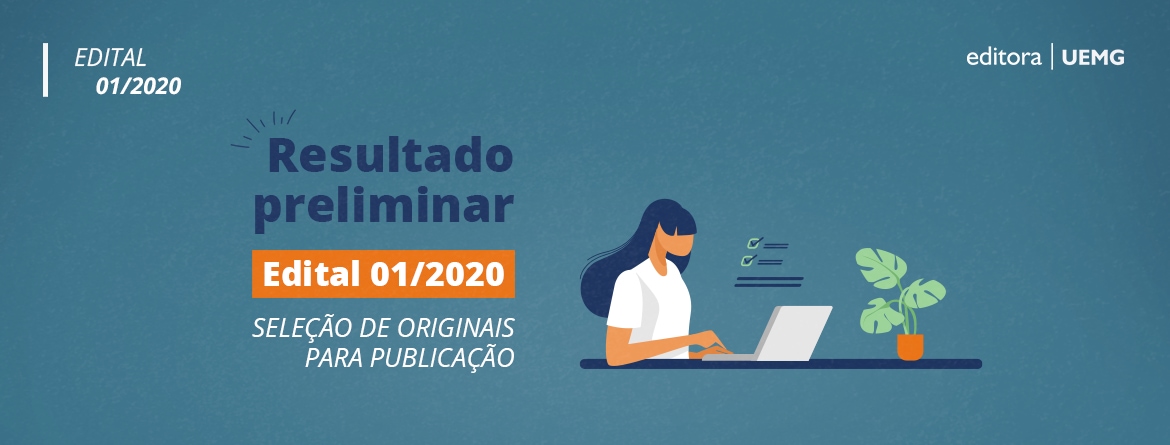 A Editora UEMG divulgou, hoje, o resultado preliminar dos originais selecionados para o Edital 01/2020 (saiba mais).