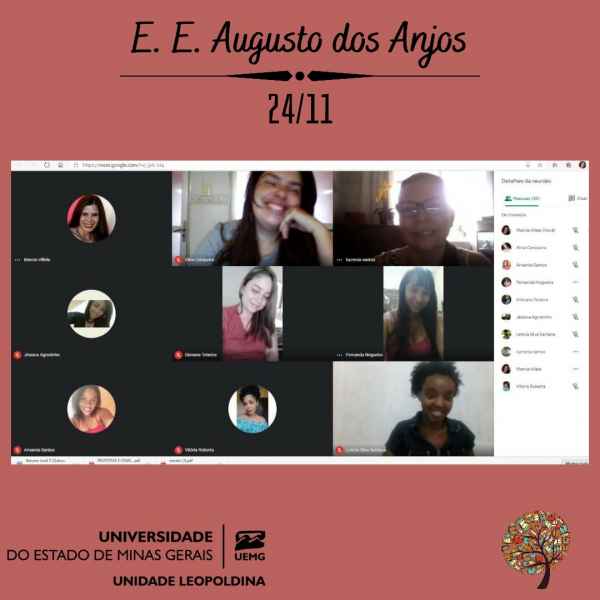 Nesta segunda-feira (26/10) ocorreu, por meio virtual, a primeira reunião do PIBID/UEMG - Unidade Leopoldina, coordenado pela professora Anicézia Romanhol, tendo como núcleos as Escolas Estaduais Augusto dos Anjos e Omar Resende Peres. Desde então, já foram realizadas várias reuniões (alguns registros, ao final), envolvendo planejamentos diversos, estudos, seminários, rodas de conversas e muitas atividades remotas entre alunas bolsistas, professoras supervisoras, professoras alfabetizadoras e alunos das escolas parceiras.