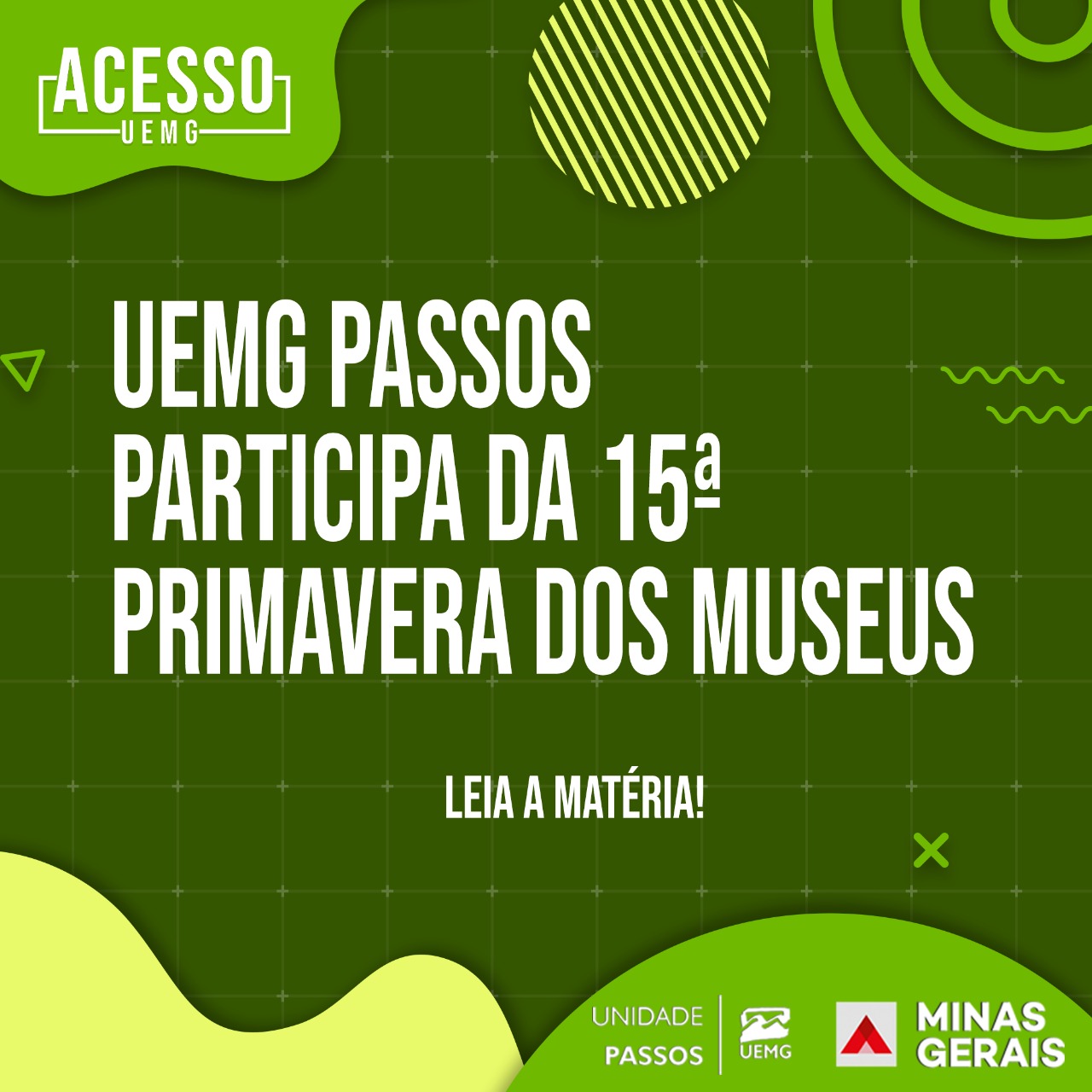 O Centro de Memória Social da UEMG Passos participa nesta semana da 15ª Primavera dos Museus, nesta edição especial do evento o tema escolhido para o roteiro de cultura foi “Museus: perdas e recomeços” o qual propõe uma reflexão sobre o papel do museu e de outras instituições de arte neste momento atual em que a sociedade enfrenta a pandemia.