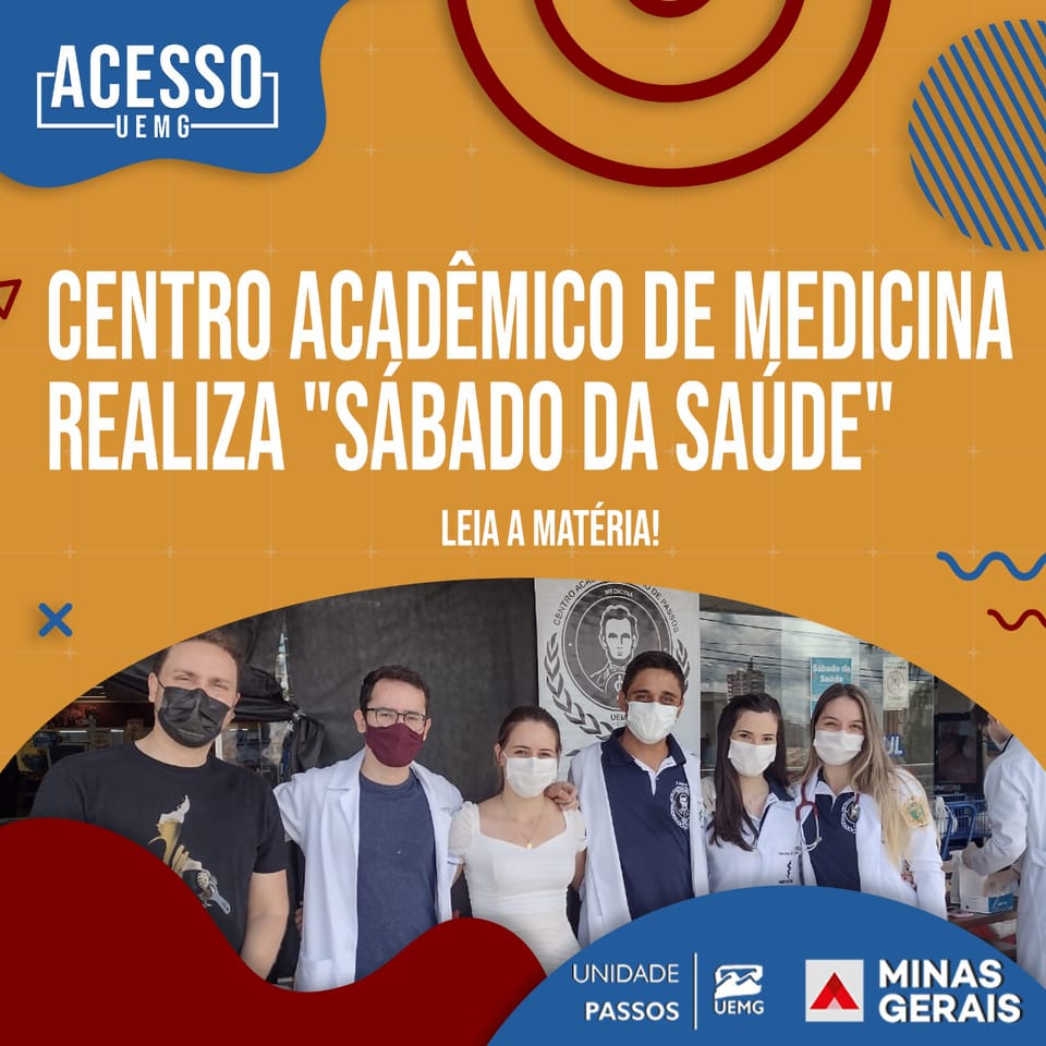 O Centro Acadêmico Barão de Passos, do curso de Medicina da UEMG, realizou no dia 27 de novembro o evento “Sábado da Saúde”. A atividade aconteceu com o apoio do Supermercado Unissul, o qual reservou um local no espaço da empresa para a realização de testagem de glicemia capilar e aferição de pressão arterial dos clientes e funcionários. Além disso, foi disponibilizada uma mesa com frutas para o público.